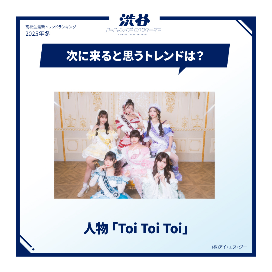 朝倉未来が発起人となり、ABEMA、アソビシステムとの共同プロジェクトから誕生したToi Toi Toi(トイトイトイ)。2025年10月22日に1stシングルCDをリリースし、来春には東名阪ツアーも決定。異なる背景を持つ6人が困難を越え未来へ踏み出す。グループ名の由来は“上手くいくように”を願うおまじない。アイドル、モデル、バラエティなど多方面へ活躍の幅を広げている。