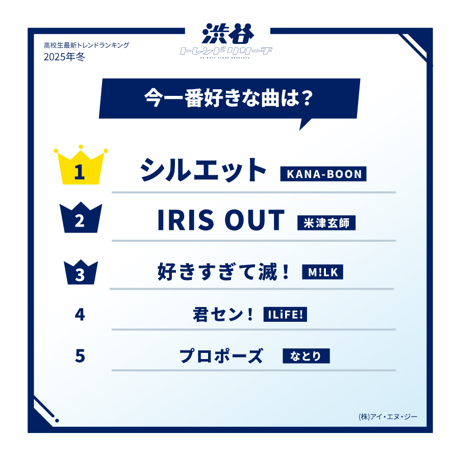 今回も「Mrs. GREEN APPLE」が堂々の1位を獲得。「彼らの音楽に救われた」(高1・男子)といった声が多く寄せられたほか、「年明けからフェーズ3に突入するなど、エンタメが盛りだくさんで追っていて楽しい」(高3・女子)といったコメントもあり、楽曲だけでなく俳優・バラエティ出演など幅広い活躍も人気に寄与している様子がうかがえます。2位も前回に続き、9人組女性アイドルグループ「iLiFE!」がランクイン。「可愛くてキラキラしていて憧れる」(高3・女子)といったコメントが目立ち、女子高校生から強い支持を集めています。