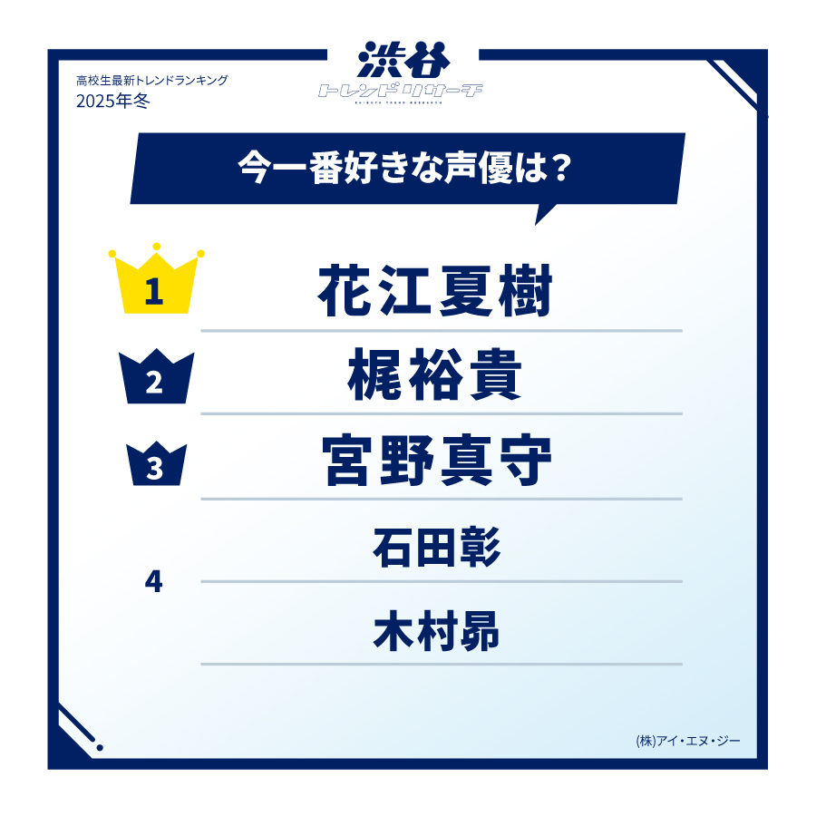 秋の特大号に続き、1位は「吉沢亮」、2位には「横浜流星」がランクイン。映画『国宝』で共演した“名コンビ”が人気をキープしています。3位には、TBS火曜ドラマ『じゃあ、あんたが作ってみろよ』で亭主関白な男性役を演じ話題を集めている「竹内涼真」が選出。「ドラマの役が良い感じだった」(高3・女子)などのコメントが寄せられ、注目度の高さがうかがえます。